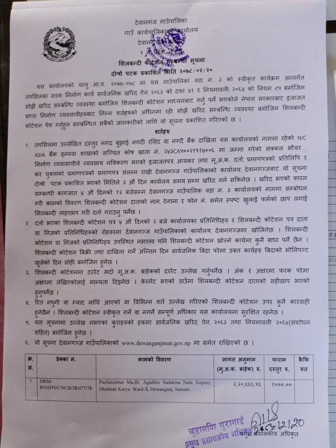 सिल्ड कोटेसन सम्बन्धि सूचना वडा न.3 दोश्रो पल्ट
